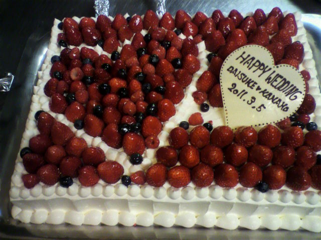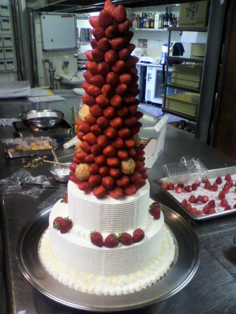 いきなり、スクウェアウェディングケーキ4台、イミテーションの苺のクロカンブッシュ1台、その他婚礼用、2次会用、などなど計200名分くらいのデザートを一人で・・・マジできついし